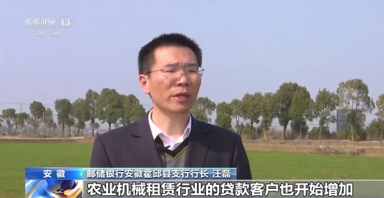 邮储银行安徽霍邱县支行行长 汪磊:随着机械强农的推进,农业服务公司、农业机械租赁行业的贷款客户也开始增加,今年这类新型客户贷款金额同比增幅超300%。